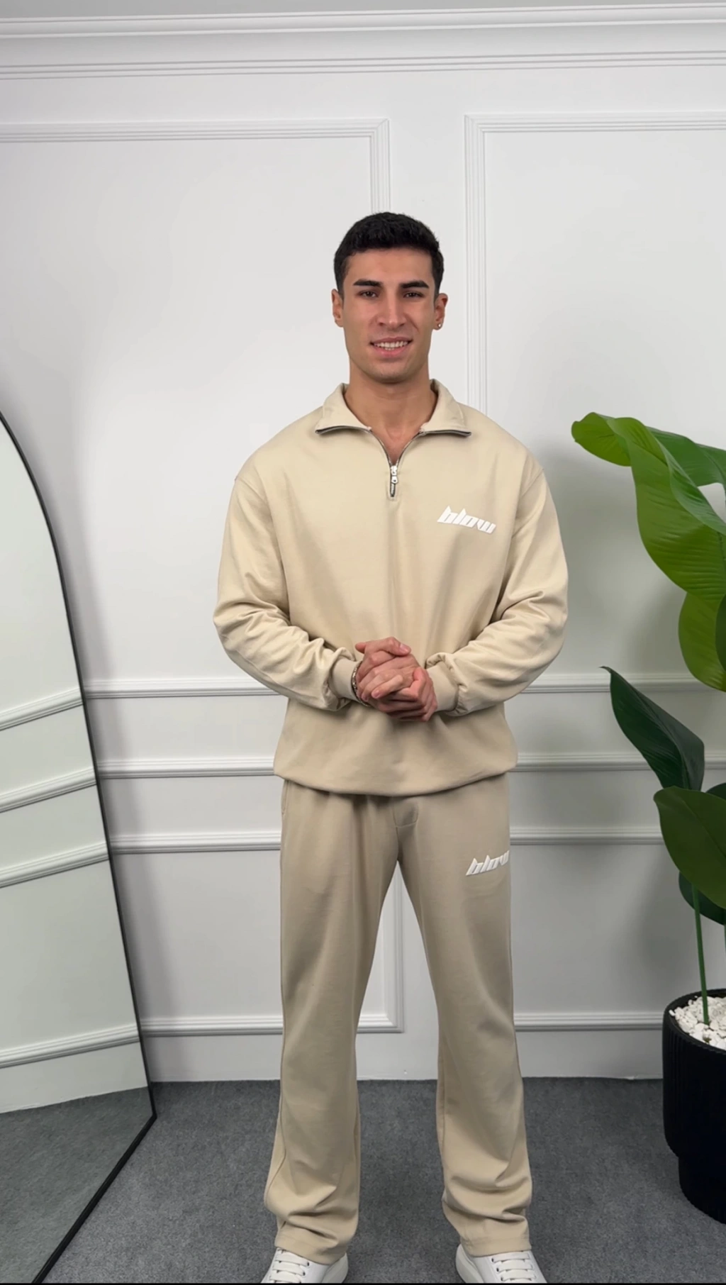 Baskılı Bej Yarım Fermuarlı Eşofman Takımı