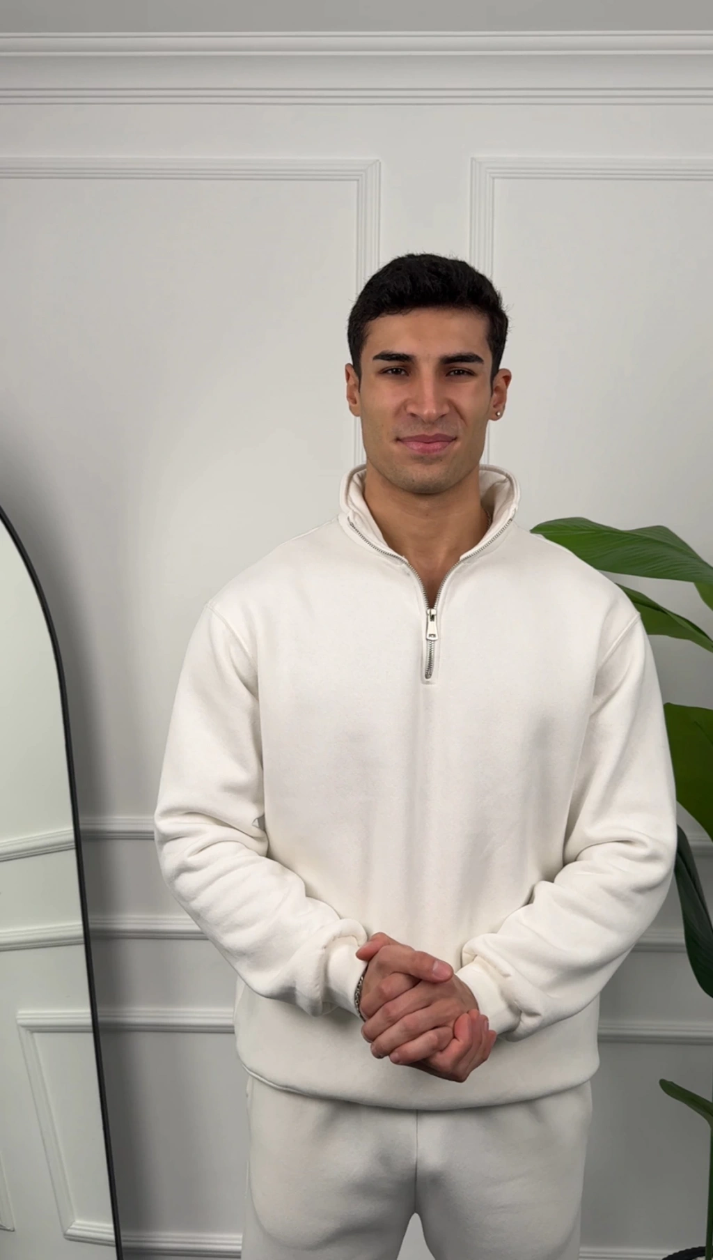 Erkek Beyaz Fermuar Yaka Sweatshirt