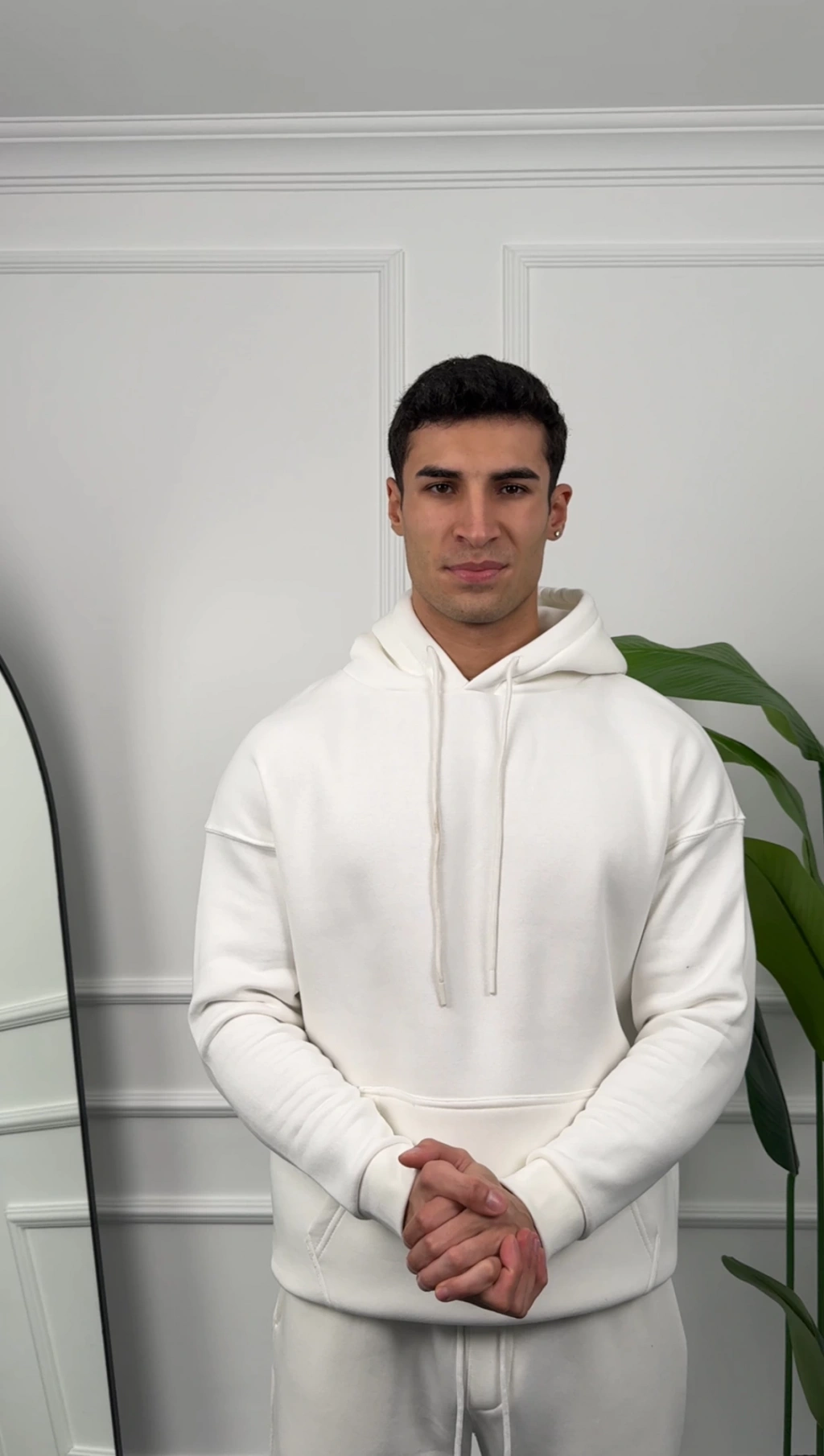 Erkek Beyaz Kapüşonlu Hoodie Sweatshirt