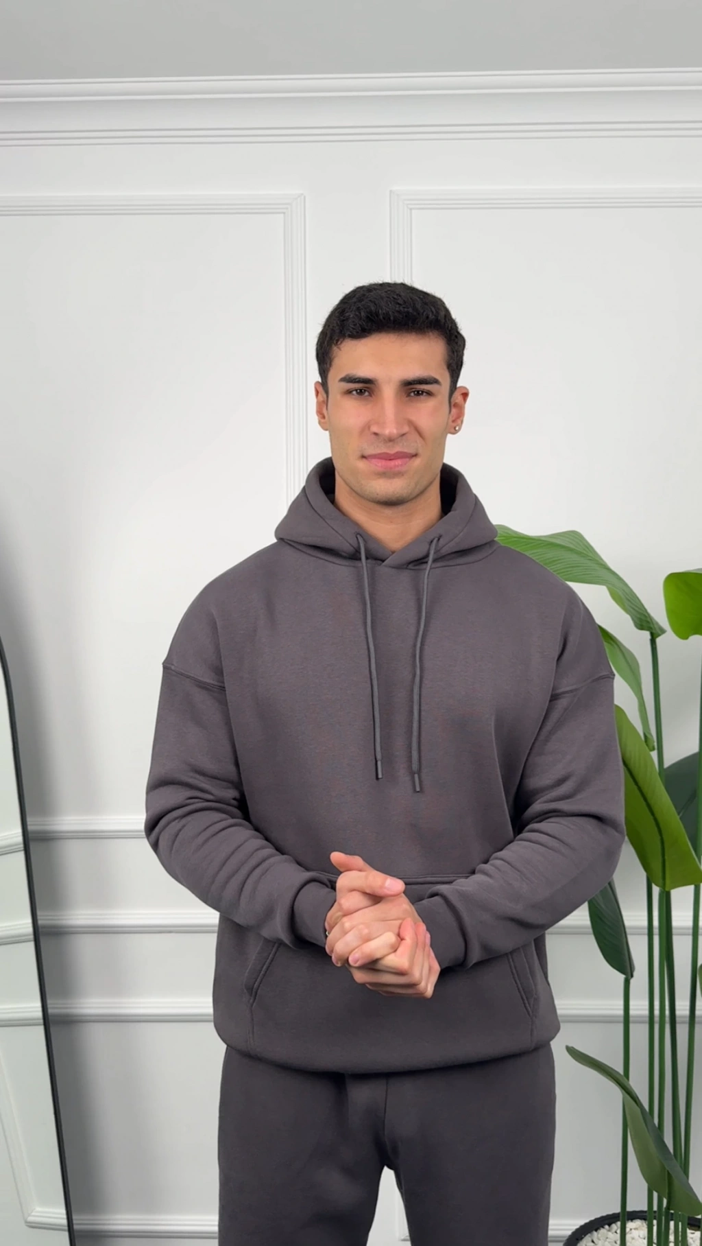 Erkek Füme Kapüşonlu Hoodie Sweatshirt