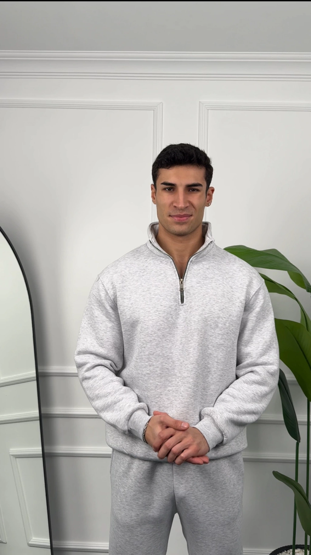 Erkek Gri Fermuar Yaka Sweatshirt