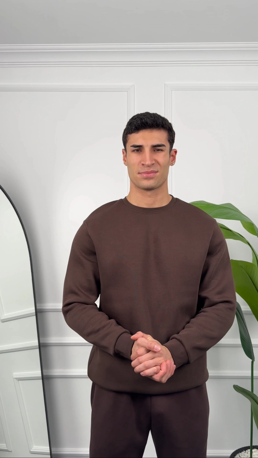 Erkek Kahverengi Oversize Kollar Dar Kesim Basic Sweatshirt