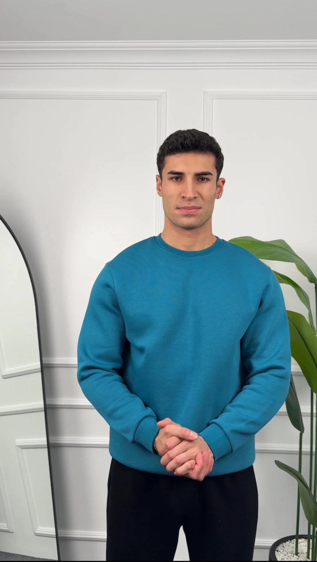 Erkek Petrol Oversize Kollar Dar Kesim Basic Sweatshirt