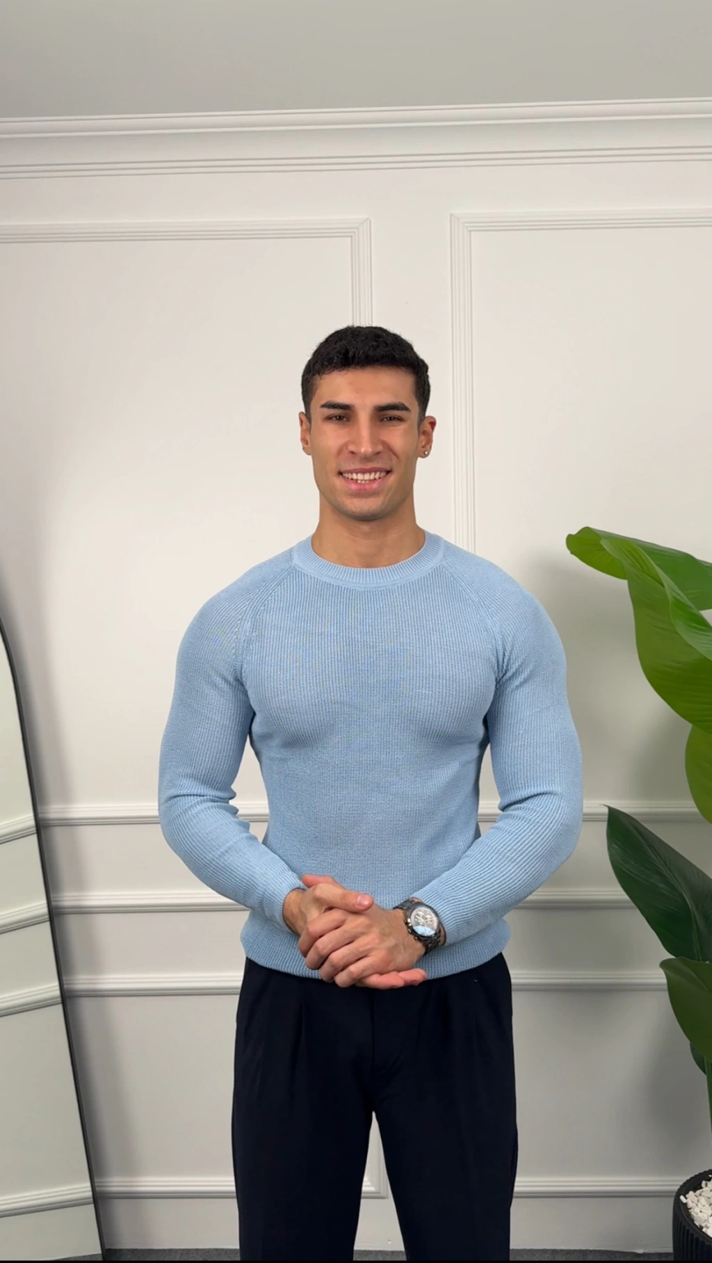 Omuz Detay Bebe Mavisi Slim Fit Kazak