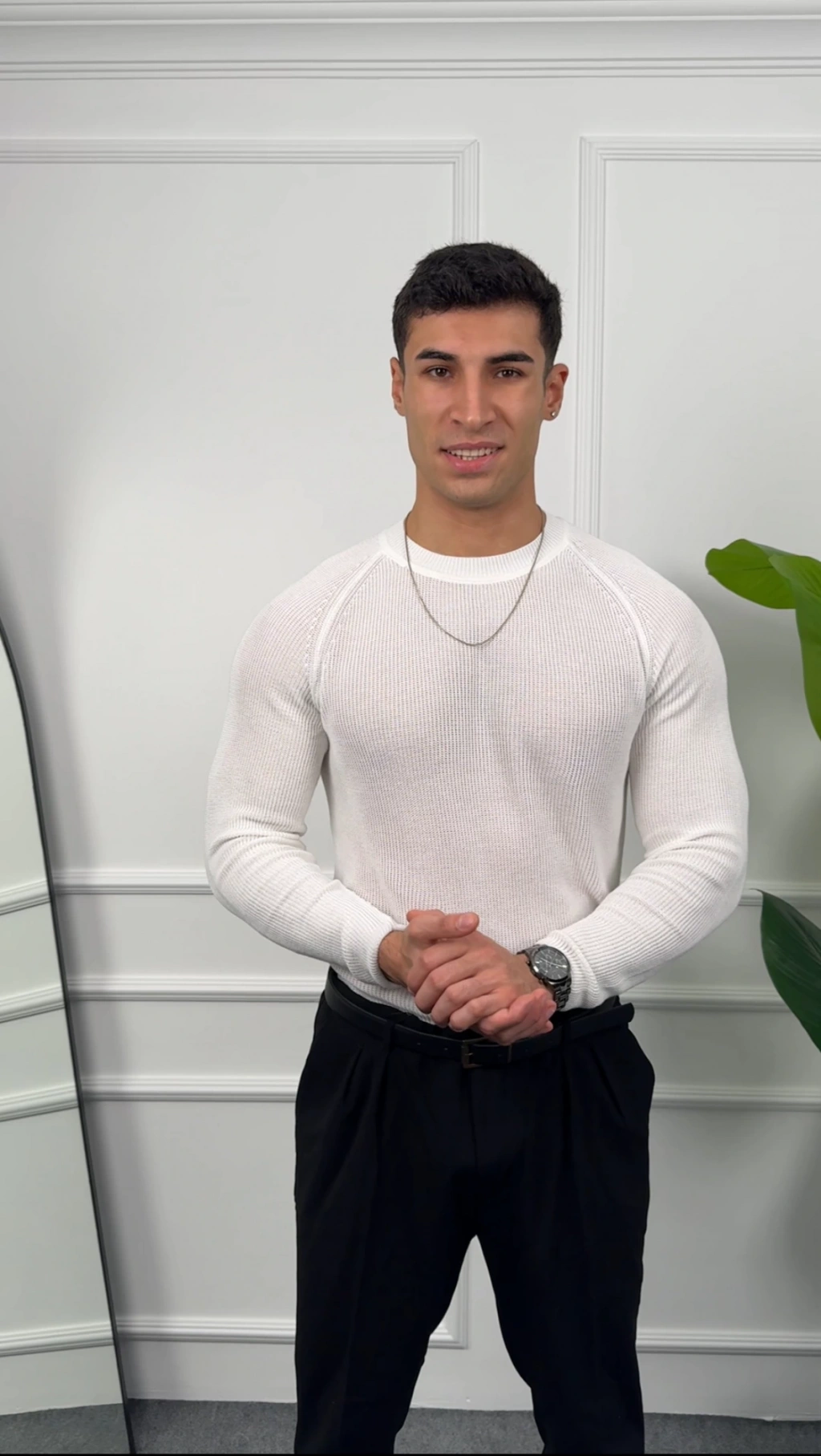 Omuz Detay Beyaz Slim Fit Kazak