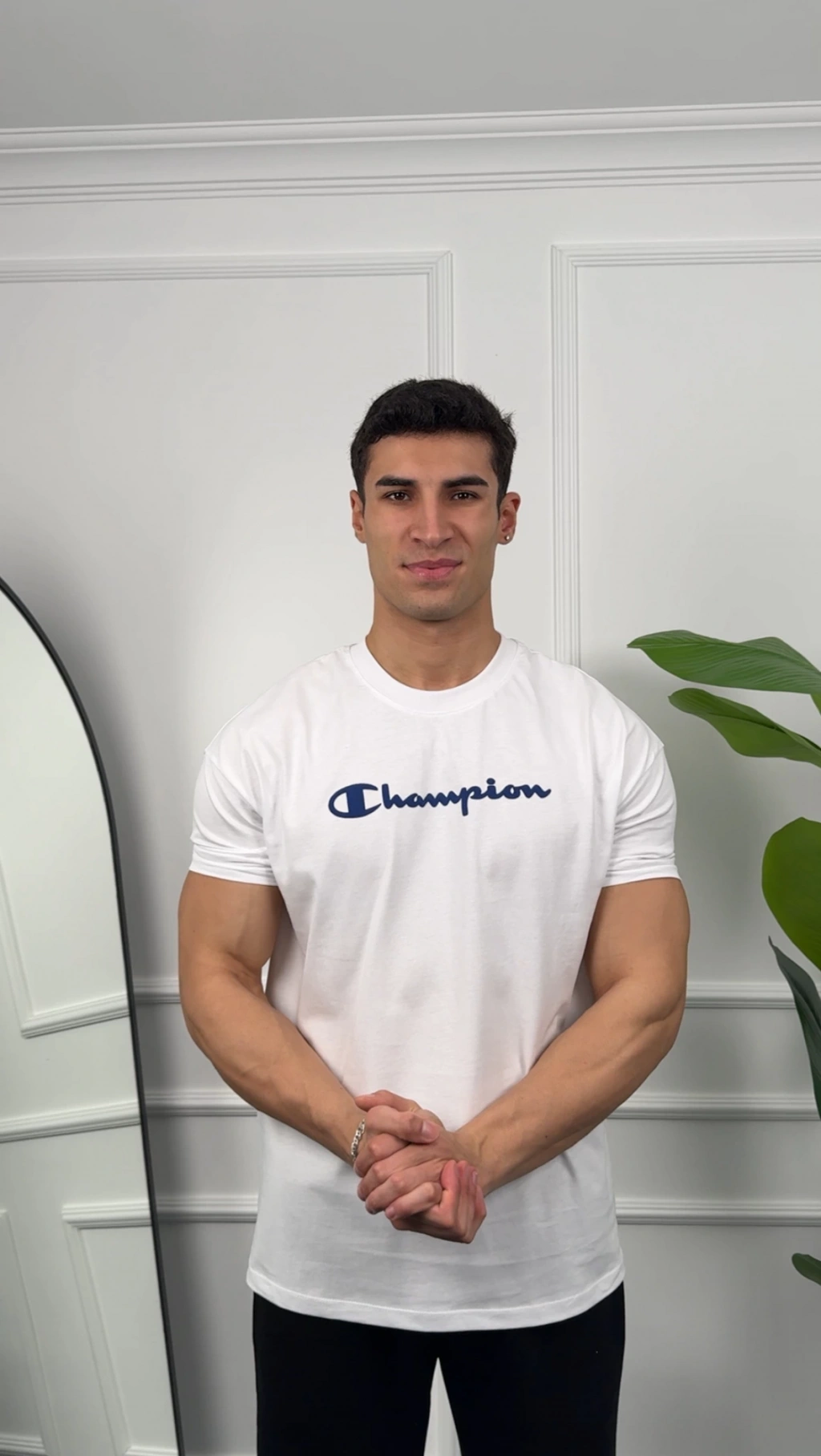 Oversize Beyaz Champion Baskılı Kollar Dar Kesim T-Shirt