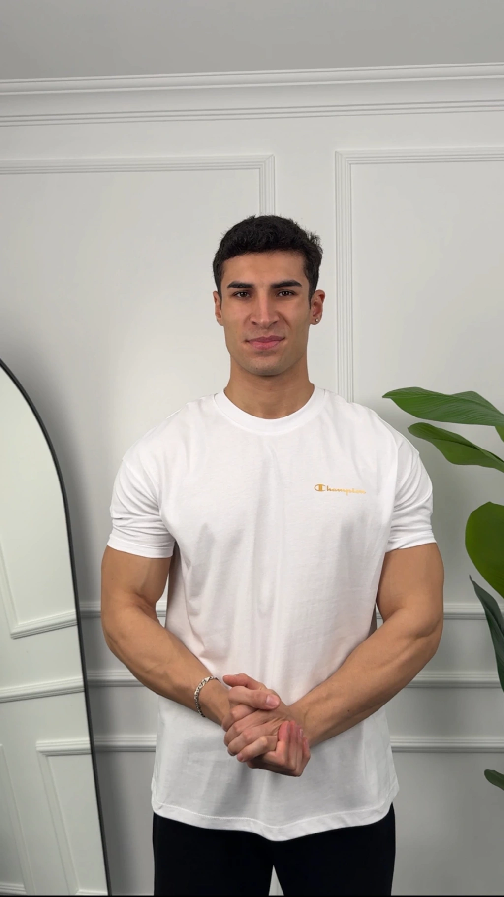 Oversize Beyaz Reflektör Champion Kollar Dar Kesim T-Shirt