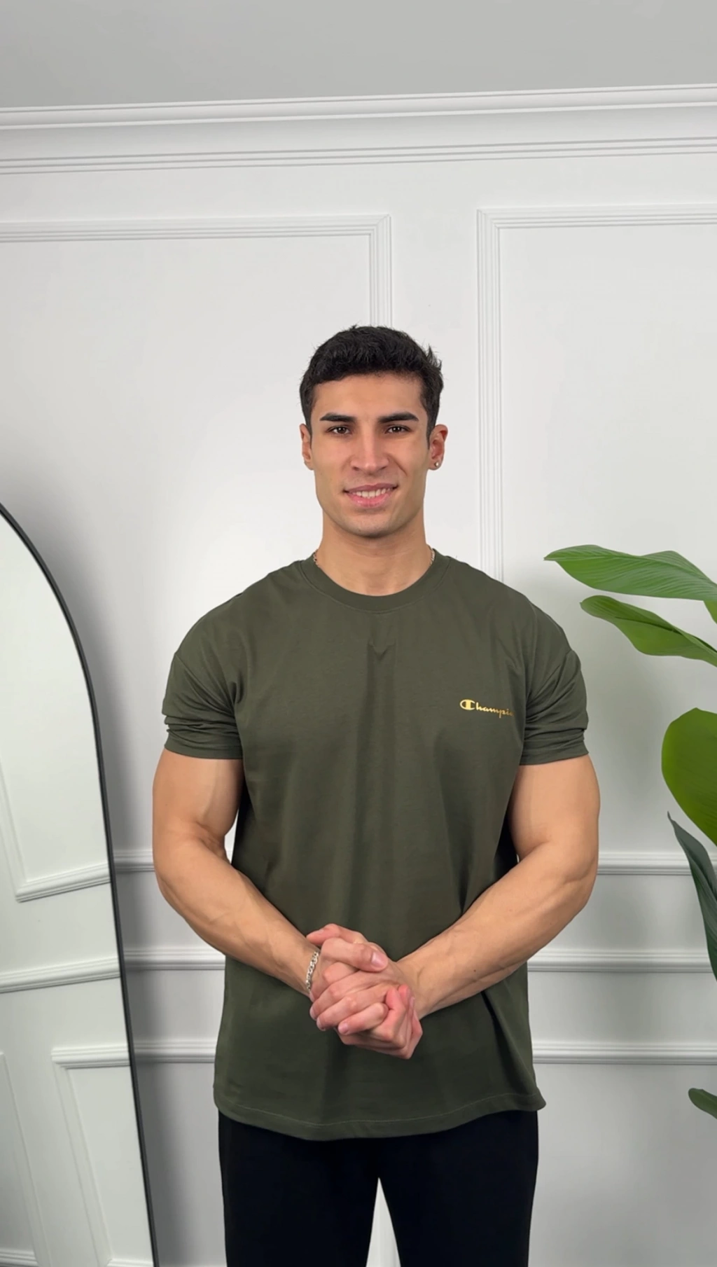 Oversize Haki Reflektör Champion Kollar Dar Kesim T-Shirt