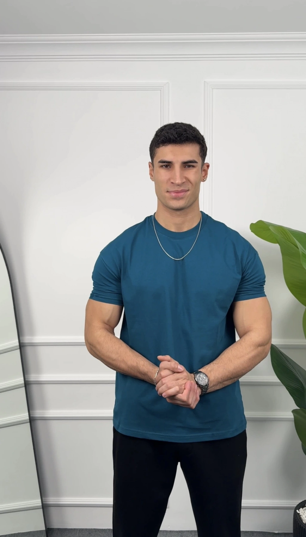 Oversize Petrol Kollar Dar Kesim T-Shirt