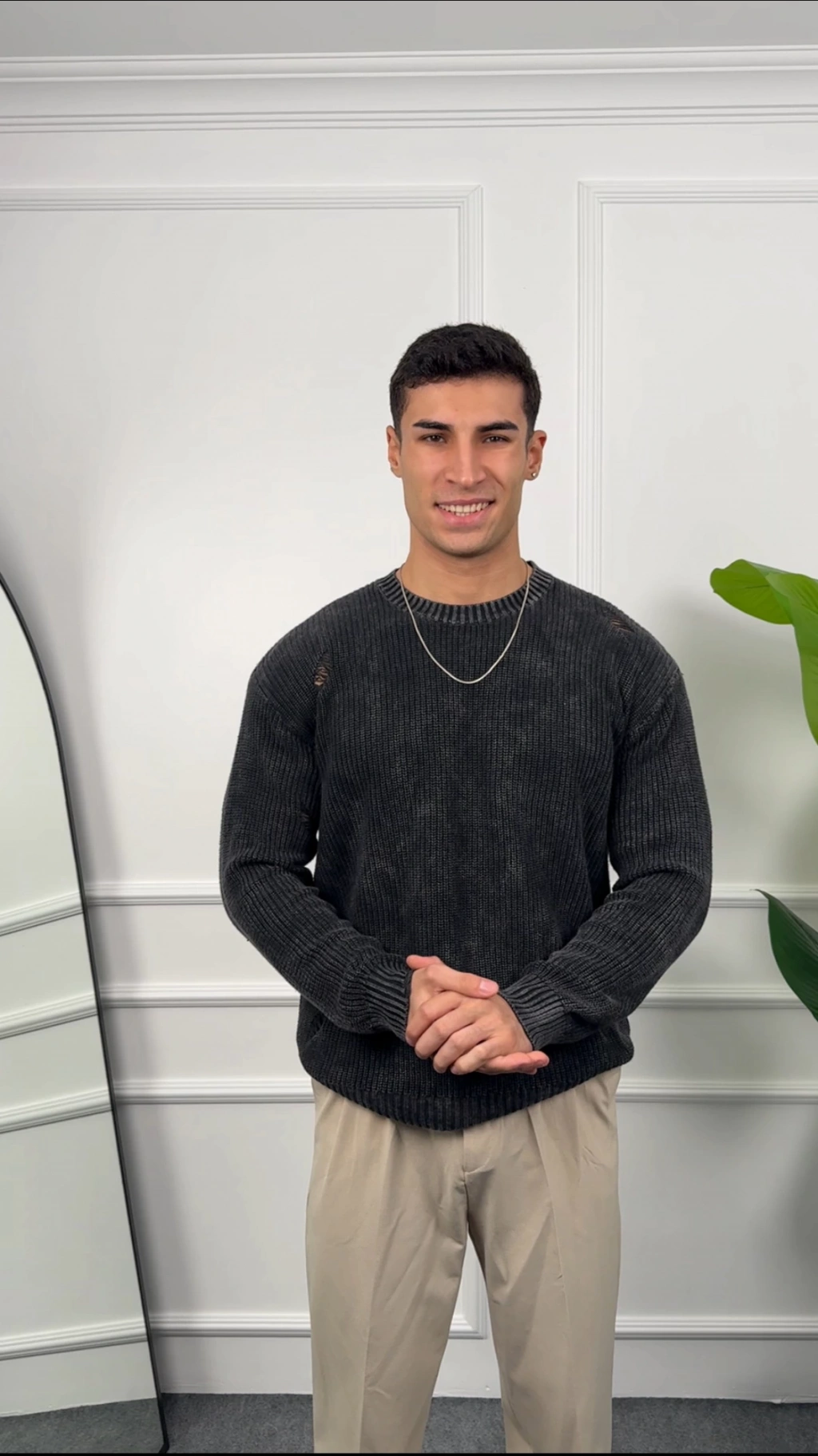 Omuz Detay Bebe Mavisi Slim Fit Kazak