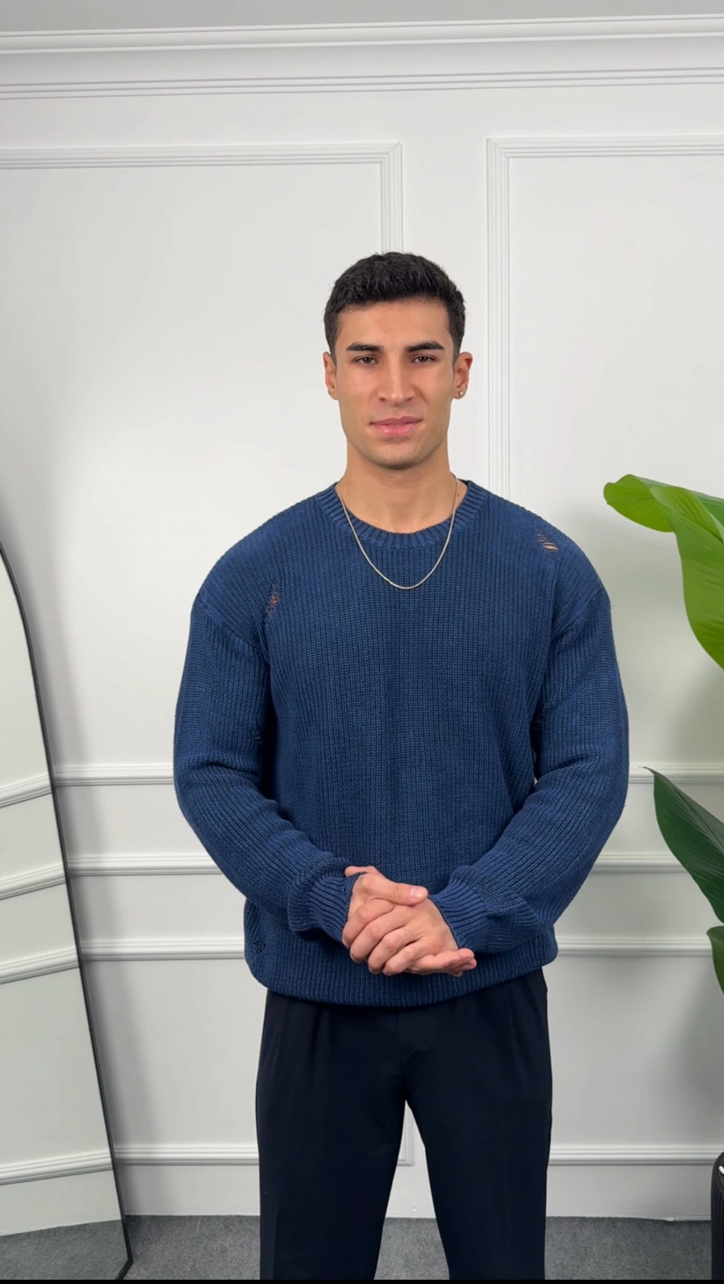 Kalın İndigo Örme Triko Kazak