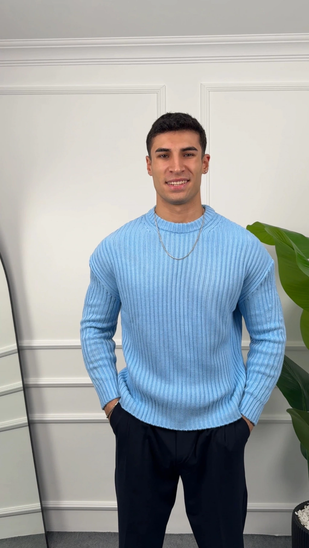 Omuz Detay Bebe Mavisi Slim Fit Kazak