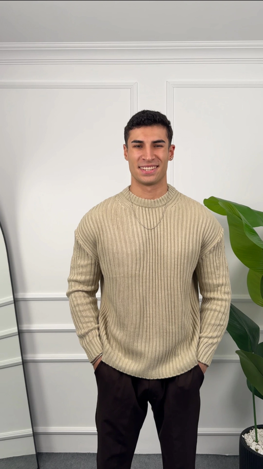 Omuz Detay Bebe Mavisi Slim Fit Kazak